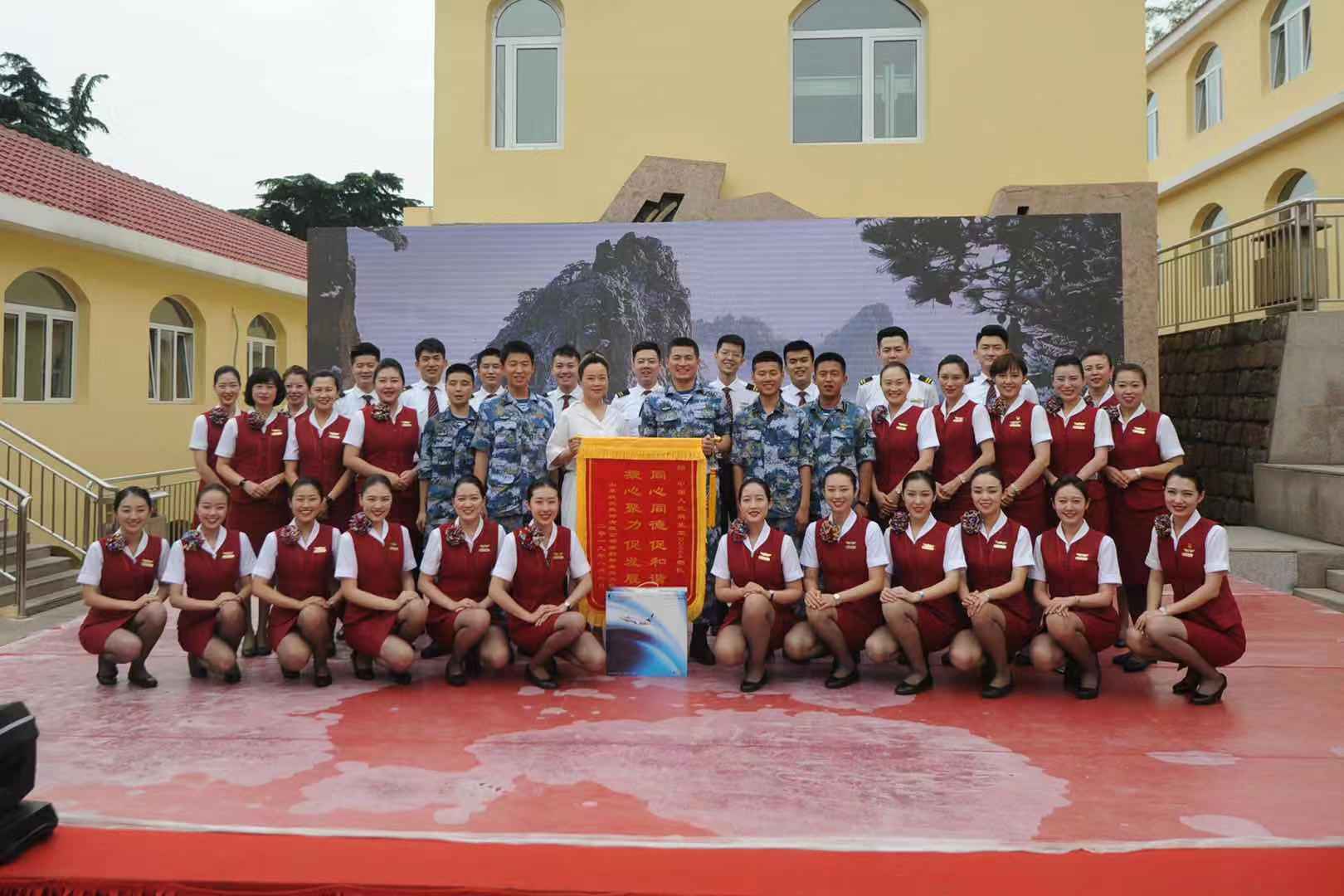 7月31日上午,在八一建軍節(jié)來臨之際,山東航空公司客艙部副總經(jīng)理華榜榜帶領(lǐng)魯雁乘務(wù)員代表來到海軍92664部隊(duì),慰問官兵參觀軍營。