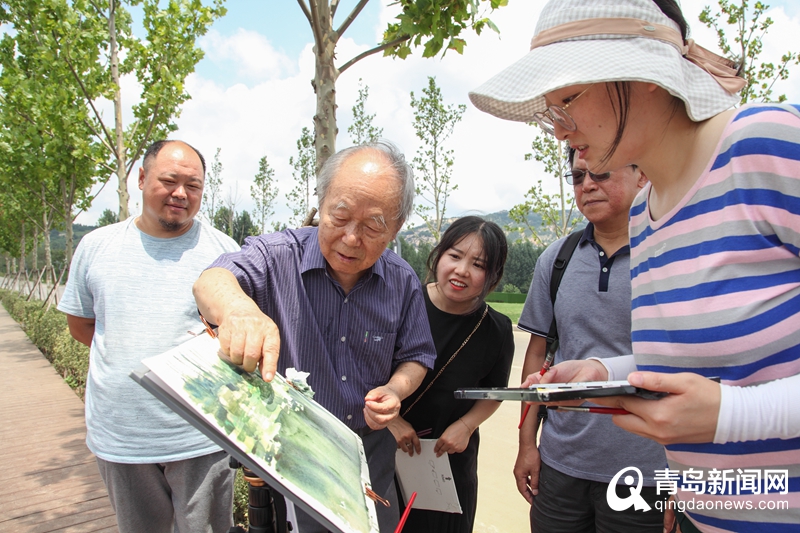 2019“萬科青島國際水彩藝術(shù)季”是青島國際時尚季的內(nèi)容之一,由中共青島市委宣傳部指導,青島報業(yè)傳媒集團、青島文化和旅游局主辦。系列活動以水彩藝術(shù)展示交流為載體,水彩采風、寫生貫穿整個藝術(shù)季,來青參加展覽的中外藝術(shù)家以及水彩研修活動的各地藝術(shù)愛好者,協(xié)同青島的專業(yè)協(xié)會、藝術(shù)院校、美術(shù)機構(gòu)、水彩藝術(shù)群體等,分為多個團隊前往市內(nèi)老城區(qū)、嶗山漁村等景區(qū)采風寫生,描繪山海之美,感受青島自然風物與海洋文化。昨日的采風寫生活動,恰逢晴日,藍天白云下的紅瓦綠樹,點亮了藝術(shù)家們的創(chuàng)作之心。關(guān)維興等藝術(shù)家還在現(xiàn)場指導了島城水彩愛好者作畫。