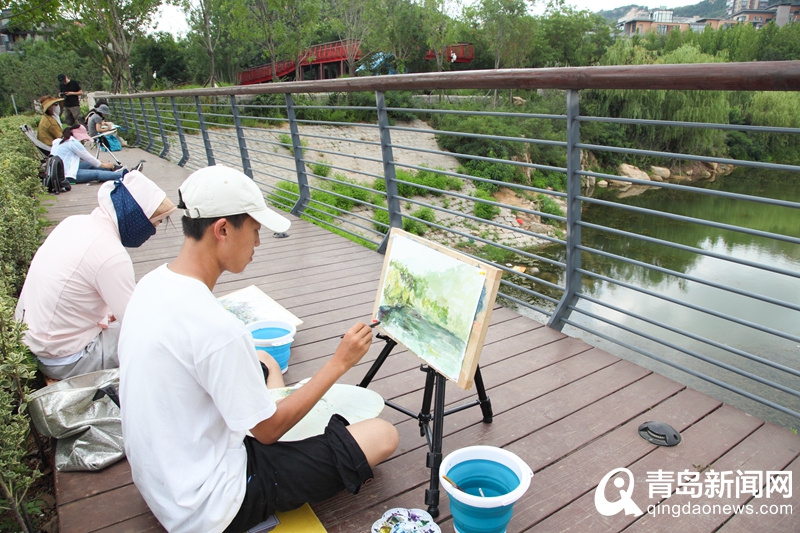青島新聞網(wǎng)8月5日訊(記者 王超 攝影 王炎坤)藍天白云,紅瓦綠樹,在藝術(shù)家的水彩點染下,顯現(xiàn)出別樣風情。昨日,2019“萬科青島國際水彩藝術(shù)季”采風寫生活動來到西海岸的青島小鎮(zhèn),關(guān)維興、王偉業(yè)、張宗綱、宿仁昌、單偉、畢善國、張塵、張海珍、袁琳、路平、林濤、郝照華等藝術(shù)家,描繪了青島新區(qū)的風貌與風情。