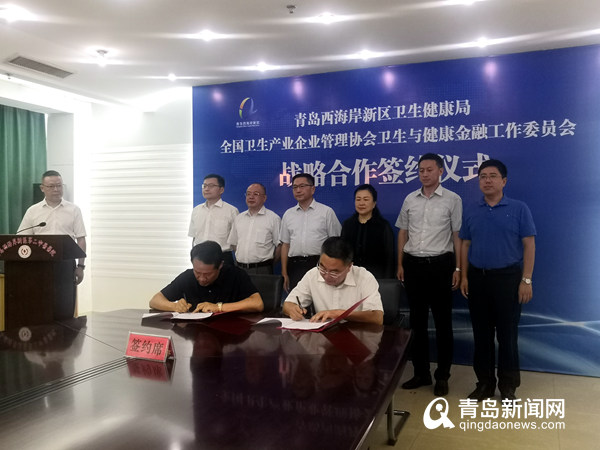 會(huì)上,青島西海岸新區(qū)衛(wèi)生健康局副局長張秀山、全國衛(wèi)生產(chǎn)業(yè)企業(yè)管理協(xié)會(huì)衛(wèi)生與健康金融工作委員會(huì)副會(huì)長劉偉簽署戰(zhàn)略合作協(xié)議。