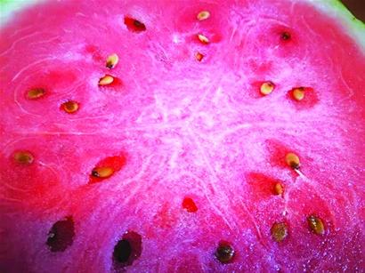 在“太空西瓜”育種基地,青島市農(nóng)業(yè)科學(xué)院專家對(duì)工作人員進(jìn)行了詳細(xì)的培育指導(dǎo)。技術(shù)人員對(duì)其中一個(gè)“太空西瓜”進(jìn)行了糖度測(cè)試,測(cè)試儀上清晰地顯示出13.1度,而同一品種的普通西瓜糖度只有10.9度。這種西瓜吃起來(lái)更加汁甜黏手。