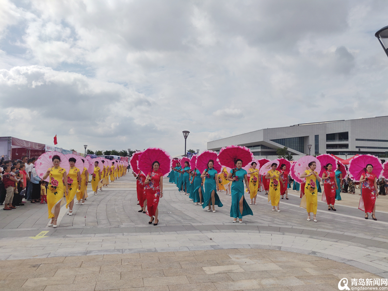 響應(yīng)時(shí)尚青島建設(shè)號(hào)召,開幕式上,舉辦了盛大的文藝演出。靚麗的身影、多彩的旗袍,再加上紅色的油紙傘舞動(dòng),120人參演的獻(xiàn)禮國(guó)慶大型旗袍秀,40人一組以“紅黃綠”三種主題顏色擺出“國(guó)”“慶”“70”字樣,向偉大祖國(guó)70華誕獻(xiàn)禮?!霸谶@樣一個(gè)日子,能參加演出,還有這么多人看,真是非常開心,也非常有紀(jì)念意義?!眳⒀萑藛T紛紛表示。