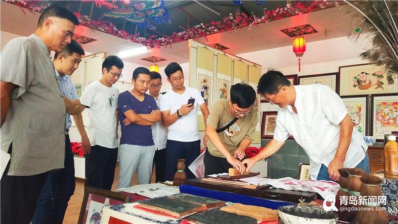 隨后,在第二展館內(nèi)體驗拓年畫,中國民間文藝家協(xié)會會員、青島市民俗學(xué)會付秘書長傅國防,現(xiàn)場傳授木版年畫的拓印。青島市民俗學(xué)會常務(wù)理事、燈謎專業(yè)委員會主任彭巖創(chuàng)作了燈謎,現(xiàn)場指導(dǎo)競猜等民俗游戲。團(tuán)員青年被傳統(tǒng)文化的生動性、鮮活性,以及中華文明的多元化所深深感染。