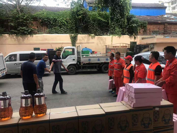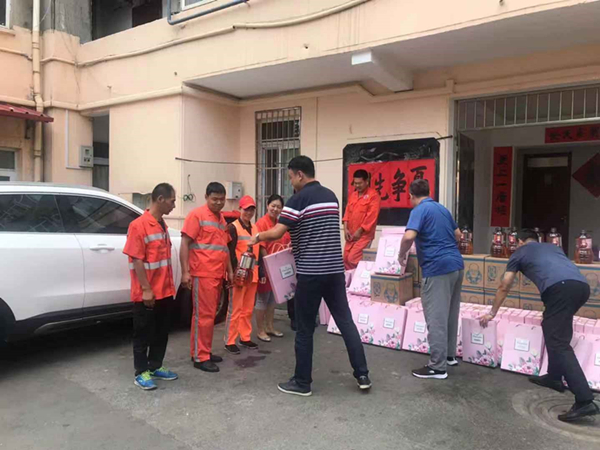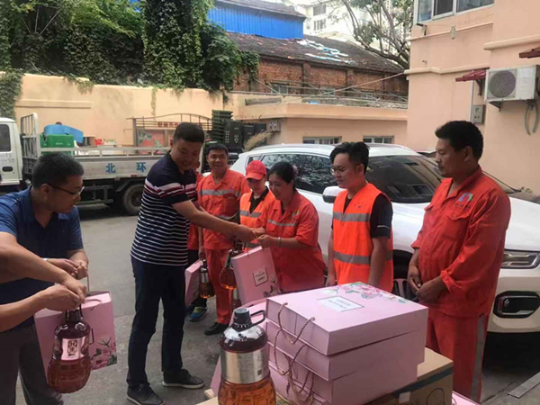 辦事處領(lǐng)導(dǎo)們?yōu)榄h(huán)衛(wèi)工人送上節(jié)日的祝福和問候,帶來了花生油、月餅等節(jié)日禮物,同時(shí)說道:“環(huán)衛(wèi)工人是我們城市的美容師,工作十分辛苦,長(zhǎng)年累月風(fēng)里來雨里去,為城市的環(huán)境整潔做出了貢獻(xiàn),向一直堅(jiān)守在一線的環(huán)衛(wèi)工人表示衷心感謝?!笔斜杯h(huán)衛(wèi)一公司鎮(zhèn)江路公司全體職工十分感謝鎮(zhèn)江路街道辦事處領(lǐng)導(dǎo)一直以來對(duì)環(huán)衛(wèi)工作的的理解和支持,并表示一定會(huì)腳踏實(shí)地地做好本職工作,堅(jiān)守崗位,再接再厲,為改善轄區(qū)環(huán)境,建設(shè)國(guó)際航運(yùn)貿(mào)易金融創(chuàng)新中心核心區(qū),共建“美麗青島”貢獻(xiàn)自己的力量。