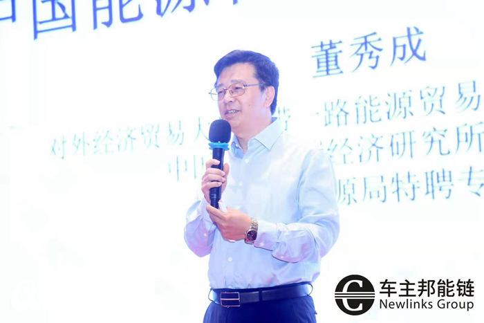 圖注:“2019中國(guó)加油站大會(huì)·數(shù)字化下的能源生態(tài)變革”分論壇,對(duì)外經(jīng)濟(jì)貿(mào)易大學(xué)一帶一路能源貿(mào)易與發(fā)展研究中心主任、國(guó)家能源局特聘專家董秀成教授發(fā)表主旨演講。