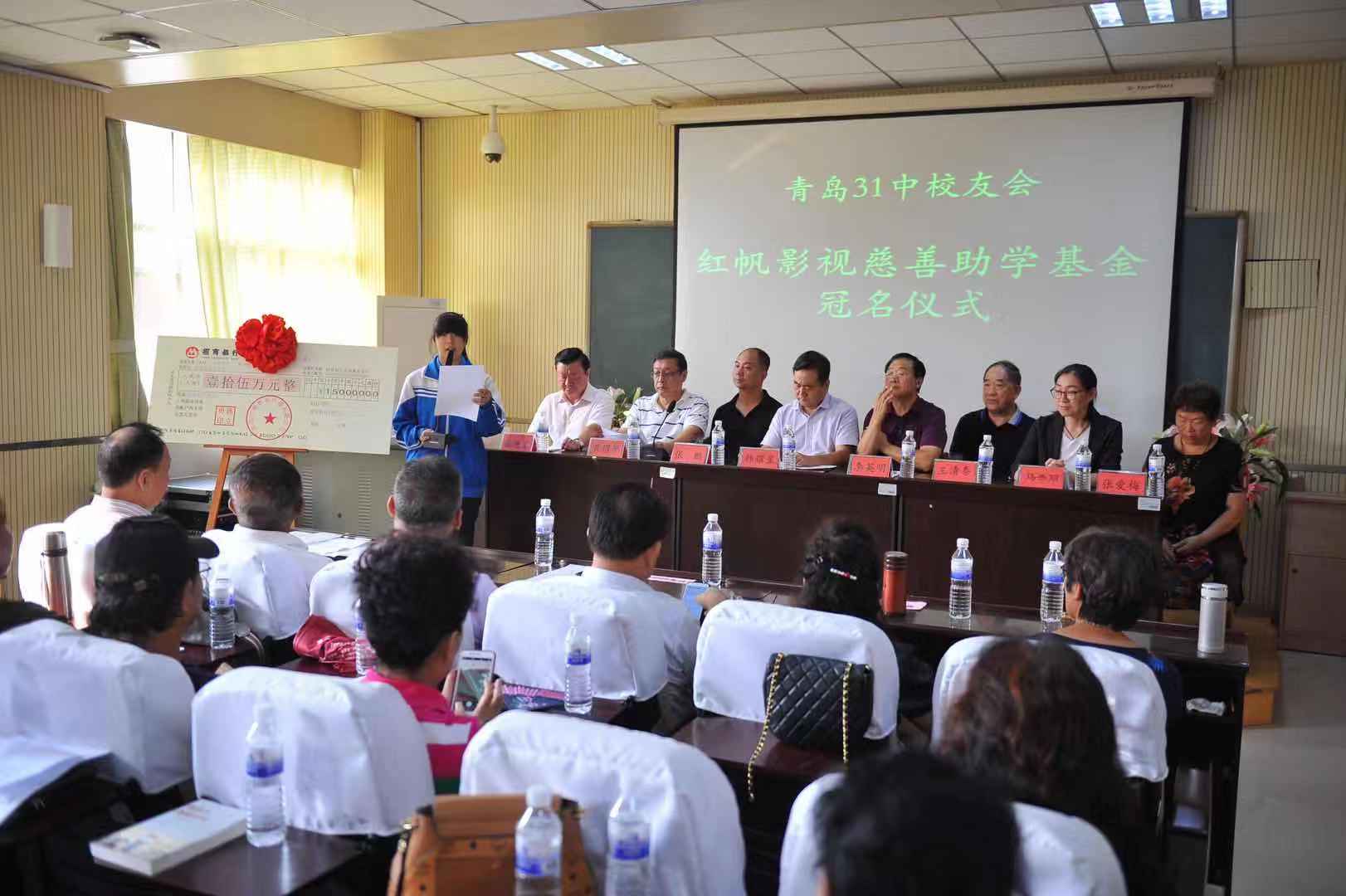 冠名儀式上,由青島慈善總會財經(jīng)分會副會長兼秘書長楊進軍主持。青島31中校友會副秘書長張愛梅簡要介紹原青島31中校友基金會概況。青島市慈善總會財經(jīng)慈善分會副會長李英明宣讀青島31中校友會紅帆影視慈善助學(xué)基金理事會成員名單(會長、副會長、秘書長等)。青島31中校友會紅帆影視慈善助學(xué)基金理事會理事長黃耀華宣讀《青島31中校友會紅帆影視慈善助學(xué)基金章程》。青島市文化藝術(shù)界慈善分會副秘書長、青島31中校友會紅帆影視慈善助學(xué)基金理事會名譽理事長王清泰,向青島市慈善總會、財經(jīng)慈善分會交接青島31中校友會紅帆影視慈善助學(xué)基金善款。市慈善總會募捐部部長張鵬向基金會頒發(fā)證書。青島31中校友會紅帆影視慈善助學(xué)基金理事會副理事長兼秘書長、青島紅帆影視有限公司總經(jīng)理蔣立勇講話。青島31中學(xué)受益學(xué)生代表和家長代表發(fā)言。