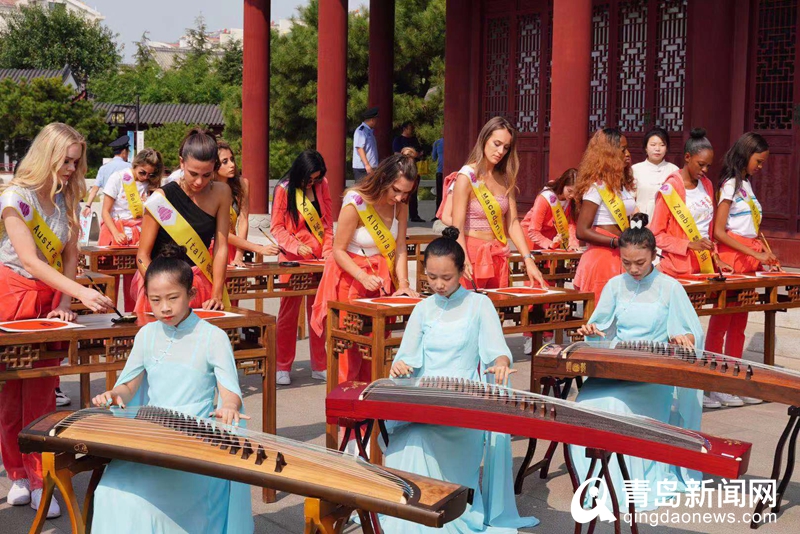 優(yōu)雅的古箏表演,用優(yōu)雅華麗的演奏深深博得了佳麗們的熱烈掌聲。在箏樂的伴奏中,城陽的書法老師帶領著佳麗們一筆一劃地用毛筆書寫祝福,在翰墨之間感悟東方文化意蘊。