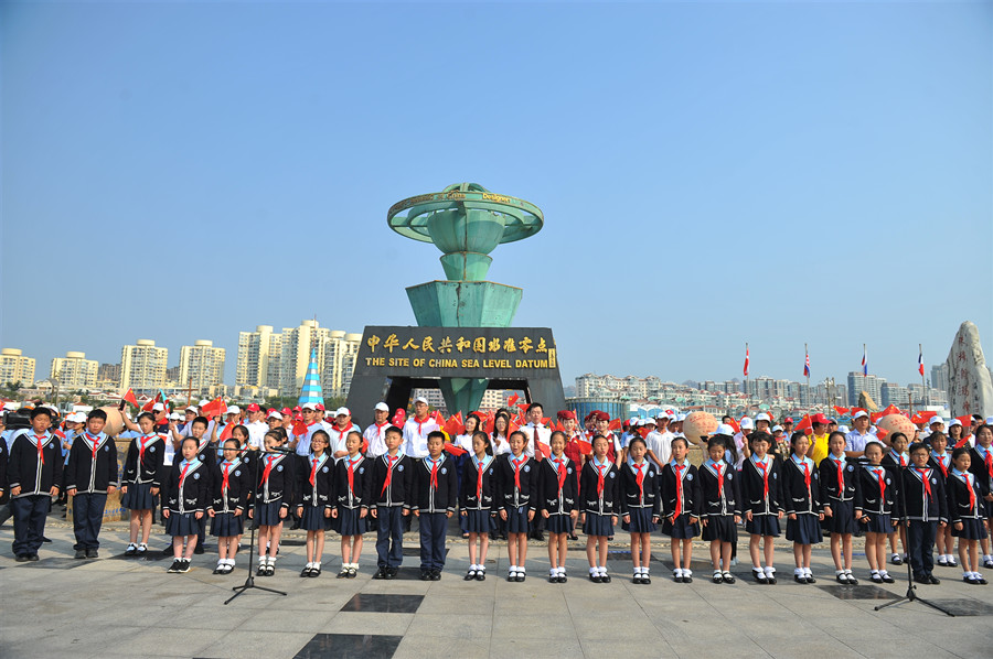 青島市文化和旅游局張毅局長、市社會組織管理局賈文海處長,市現(xiàn)代服務業(yè)聯(lián)合會任振剛理事長,山東海岸工程學會趙曉龍秘書長等有關部門領導出席儀式,主辦單位領導及代表,青島市旅游協(xié)會副會長單位、部分常務理事、理事和會員單位,銀海集團黨員和職工代表,活動還邀請了銀海學校師生代表約300人在中華人民共和國水準零點廣場整裝集結。