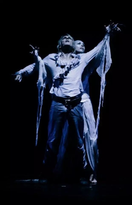 而音樂劇中的一大亮點就是“死神”的存在。從頭到尾一言不發(fā),用優(yōu)美的肢體語言暗示著劇中人物的命運。但誰都知道故事的結局,即便死神在羅密歐身邊反復出現(xiàn),觀眾也不會大喊:“夭壽啊!劇透??!我要退票!”