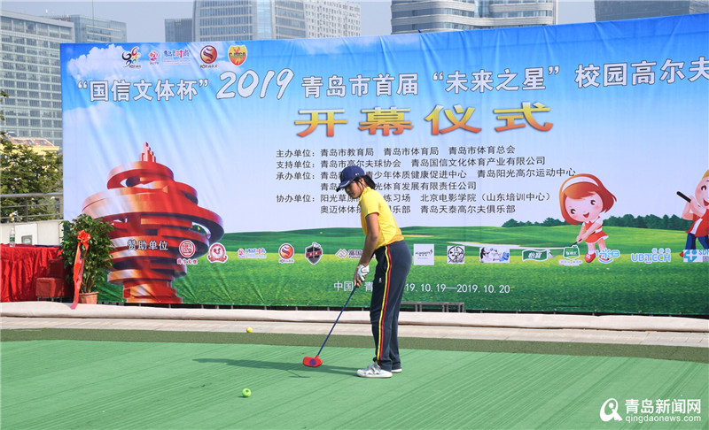 青島新聞網(wǎng)10月21日訊 (記者 劉文超) GOLF——“綠色,氧氣,陽光,友誼”,高爾夫運動是一項集享受大自然樂趣、體育鍛煉和游戲于一身的國際流行的運動項目。10月19日上午8時30分,由青島市體育局、青島市教育局、青島市體育總會共同主辦;由青島陽光高爾夫運動中心和青島新時代青少年體質(zhì)健康促進中心承辦的“國信文體杯”2019青島市首屆“未來之星”校園高爾夫錦標(biāo)賽,在風(fēng)光秀麗的浮山腳下,青島國信體育中心貝殼湖畔的陽光高爾夫運動中心總部盛大舉行,全體小選手和家長朋友們共300多人參加了別開生面的開幕式和獨具匠心的開球儀式。