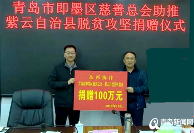 隨后舉行的捐款儀式上,即墨區(qū)慈善總會向紫云縣捐贈慈善資金100萬元。