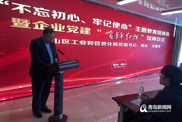 會上,嶗山區(qū)工業(yè)和信息化局黨組書記、局長王保生宣讀了《關于授予于乃新等6名嶗山區(qū)工業(yè)和信息化局機關黨委企業(yè)黨建“金牌紅領”的通報》,授予青島黃海制藥有限責任公司常務副總經理、黨委書記安良,中融新大集團有限公司副總裁、中共山東焦化控股有限公司黨委副書記谷佃軍,青島騰遠設計事務所有限公司人力行政總監(jiān)黨委書記馬猛,青島網信信息科技有限公司董事長、黨支部書記周書田,嶗山區(qū)煙草專賣局(營銷部)局長、總經理、黨支部書記于乃新,青島錦上科技發(fā)展有限公司董事長、黨支部書記江世文等6人為企業(yè)黨建“金牌紅領”,并在這6家基層黨組織設立配備一名黨建專員的“金牌紅領工作室”實施黨建幫聯(lián)計劃。