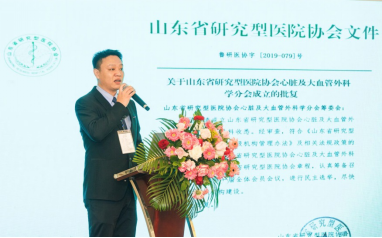 山東省研究型醫(yī)院協(xié)會副秘書長王興步教授代表山東省研究型醫(yī)院協(xié)會會長胡三元教授宣讀關(guān)于同意批復(fù)成立心臟及大血管外科分會的文件。