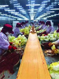 在故鄉(xiāng)農(nóng)產(chǎn)的廠區(qū)里采訪,發(fā)現(xiàn)占地最多的還是冷庫。企業(yè)相關(guān)人員介紹說,白菜等好多蔬菜都是季節(jié)性產(chǎn)品,冷庫里存放的多是青島本地的大白菜 等蔬菜。因為這個季節(jié)生產(chǎn)的白菜口感最好, 而企業(yè)需要一年四季都生產(chǎn)泡菜,因此現(xiàn)在除生產(chǎn)泡菜外,還在存儲大量的白菜等,以適應(yīng) 一年的生產(chǎn)。以白菜為例,一天需要3萬斤,一 年的白菜需求最約為5000噸,也就是約一千萬斤。這么大的需求量,必須要有冷庫支持。目前企業(yè)建成了3000多噸的冷庫,如果生產(chǎn)量再大,還要加大面積。