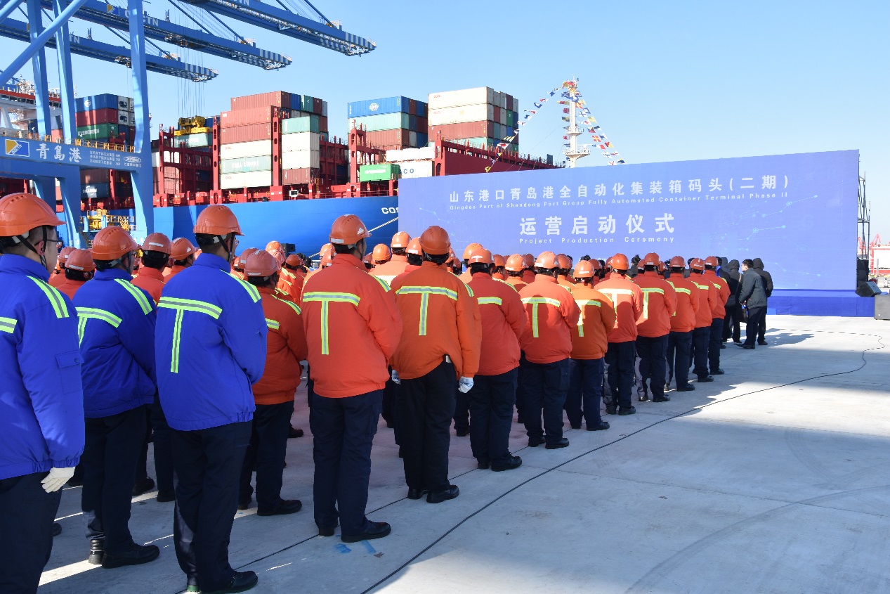 11月28日,全球首個“氫+5G”智慧生態(tài)港在山東港口青島港投產(chǎn)運營。該碼頭岸線長660米,擁有 2個泊位,設(shè)計吞吐能力170萬標(biāo)準(zhǔn)箱/年,配備9臺雙小車岸橋(STS)、40臺高速軌道吊(ASC)和45臺自動導(dǎo)引車(L-AGV)。