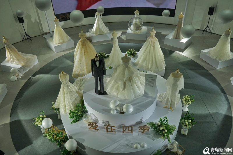 與主題展交相呼應(yīng)的是婚紗展,共發(fā)布20余件高定手工婚紗。展出的婚紗來于自黎巴嫩、歐洲、紐約等地的著名設(shè)計師品牌禮服,婚紗以東方文化為底蘊,結(jié)合西方元素,演繹著浪漫唯美的愛情故事,其中最貴的一件價值8萬。