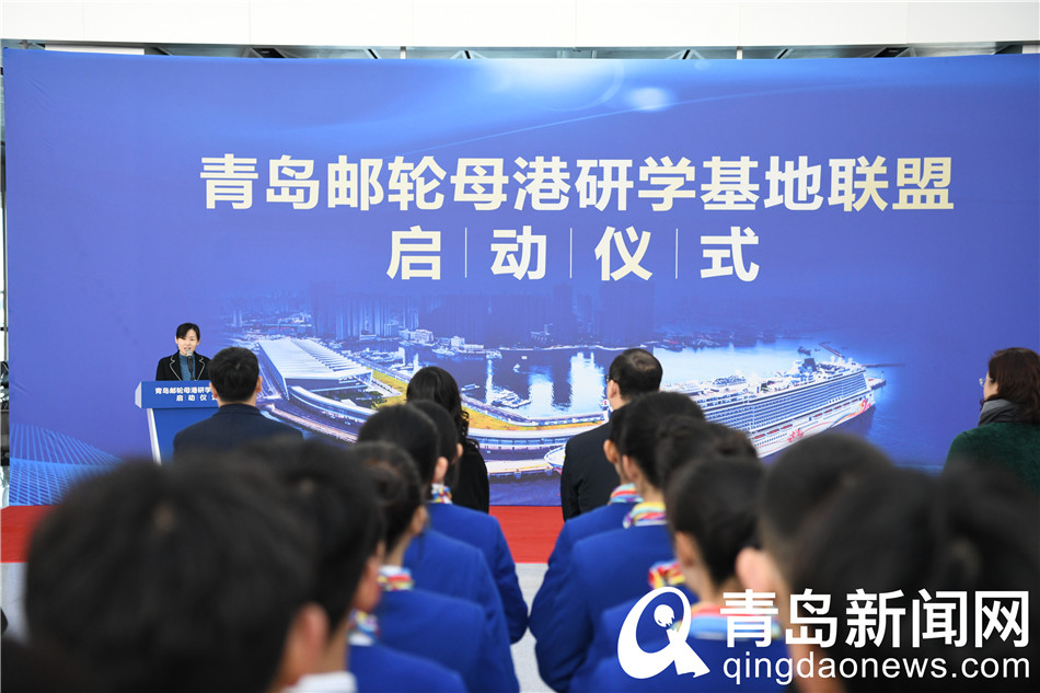 青島郵輪母港研學基地聯(lián)盟啟動儀式現(xiàn)場。