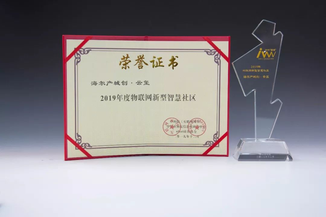 ▲海爾產(chǎn)城創(chuàng)·云璽榮獲“2019年度物聯(lián)網(wǎng)新型智慧社區(qū)”