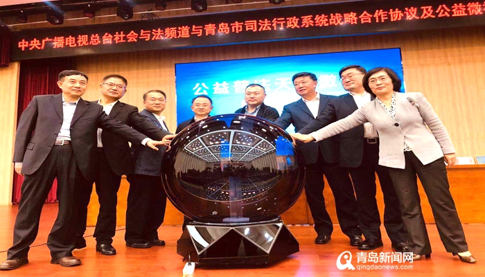 活動(dòng)現(xiàn)場(chǎng),青島市委、政法委書(shū)記宋永祥和中央廣播電視總臺(tái)社會(huì)與法頻道副主任權(quán)勇致辭,中央廣播電視總臺(tái)社會(huì)與法頻道《法律講堂》欄目組與青島市司法局簽署《法治外景拍攝基地合作備忘錄》,中央廣播電視總臺(tái)社會(huì)與法頻道《法律講堂》欄目組與青島市司法局、青島市律師協(xié)會(huì)簽署《海選主講人合作備忘錄》,出席活動(dòng)的領(lǐng)導(dǎo)共同啟動(dòng)水晶球,正式發(fā)布公益普法天天微視頻。