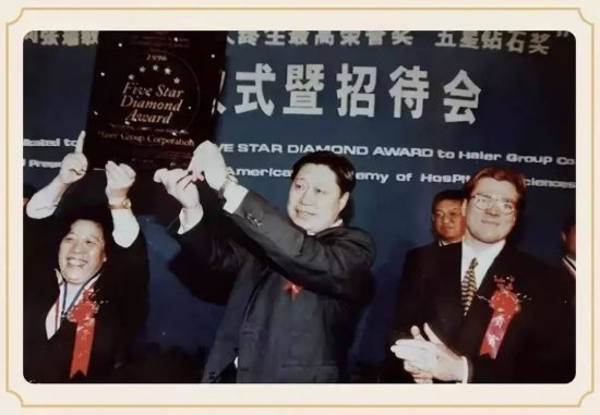 美國優(yōu)質(zhì)服務(wù)協(xié)會向張瑞敏頒發(fā)國際星級服務(wù)最高榮譽(yù)“五星鉆石獎”