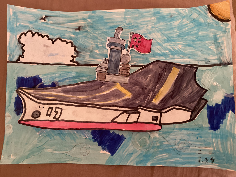 蘇會(huì)童:通過(guò)學(xué)習(xí),我知道了山東艦是我國(guó)第一艘自主研發(fā)的國(guó)產(chǎn)航空母艦。作為一名山東的少先隊(duì)員,我感到無(wú)比驕傲和自豪!我想對(duì)解放軍叔叔說(shuō):親愛(ài)的解放軍叔叔,謝謝你們帶來(lái)和平,我要向你們學(xué)習(xí)堅(jiān)強(qiáng)、不怕困難的精神!