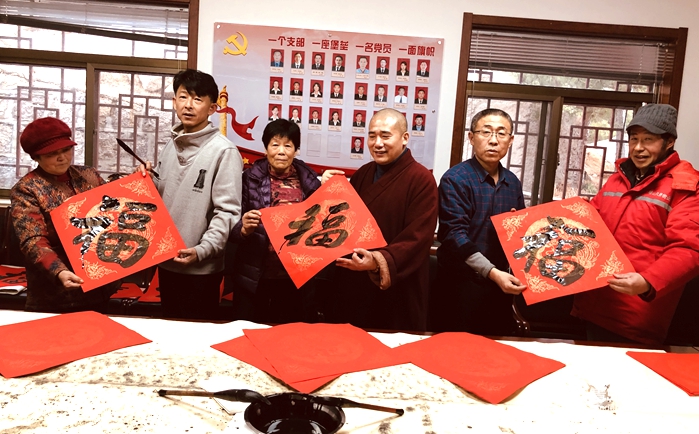 “我們的書法愛好者一大早就開始忙活了,一天下來送出去了600多份‘?!帧!比A嚴(yán)管理處處長匡淼告訴記者,本次送“?!被顒又饕?lián)動了長嶺村和返嶺村兩個村的村民,也得到了華嚴(yán)管理處的三位書法愛好者的支持。