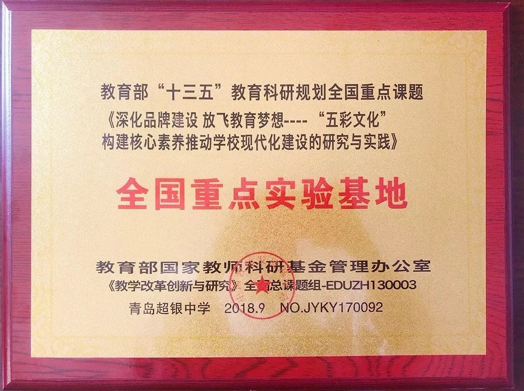 青島超銀中學研究課題《深化品牌建設,放飛教育夢想——“五彩文化”構建核心素養(yǎng)推進現(xiàn)代化學校建設的研究與實踐》作為教育部“十三五”教育科研規(guī)劃全國重點課題順利結(jié)題,并榮獲科研成果一等獎。這也成為超銀學校建校以來獲得的首個國家級科研獎項。9月23日,超銀教育集團召開了該課題結(jié)題會。另外,超銀學校心理健康研究中心的國家級課題《淺談中華優(yōu)秀傳統(tǒng)文化在家庭教育中的作用》也已正式申請立項。近三年來,超銀學校已經(jīng)有200余項科研成果順利完成。