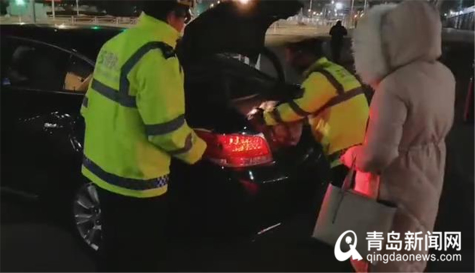 執(zhí)法人員用私家車送最后一位下火車的旅客回家。