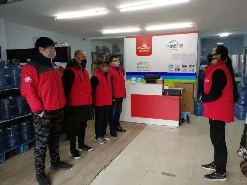 在終端配送方面,刺猬網(wǎng)公司所有加盟配送商全部簽署承諾書,對(duì)社會(huì)鄭重承諾:對(duì)店員及配送員工進(jìn)行安全防護(hù)上崗培訓(xùn);工作期間全天佩戴防護(hù)口罩;用肥皂和洗手液洗手確保個(gè)人衛(wèi)生;每日定時(shí)對(duì)店鋪及用品和設(shè)施及工具等進(jìn)行清潔消毒;每日定時(shí)對(duì)員工進(jìn)行體溫測(cè)量并及時(shí)上報(bào);保持店內(nèi)通風(fēng)和環(huán)境有序等,全力以赴做好疫情防控,為消費(fèi)者竭力提供健康、安全的嶗山牌桶裝水和大包裝水。