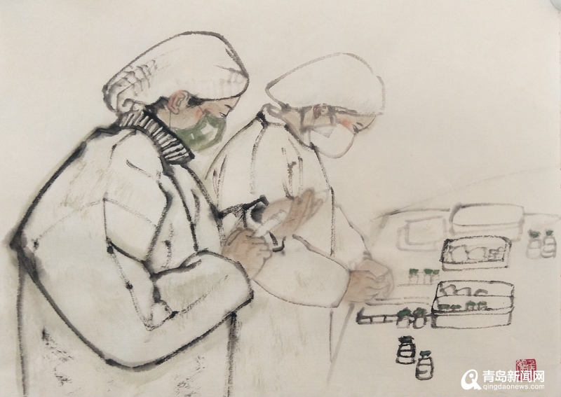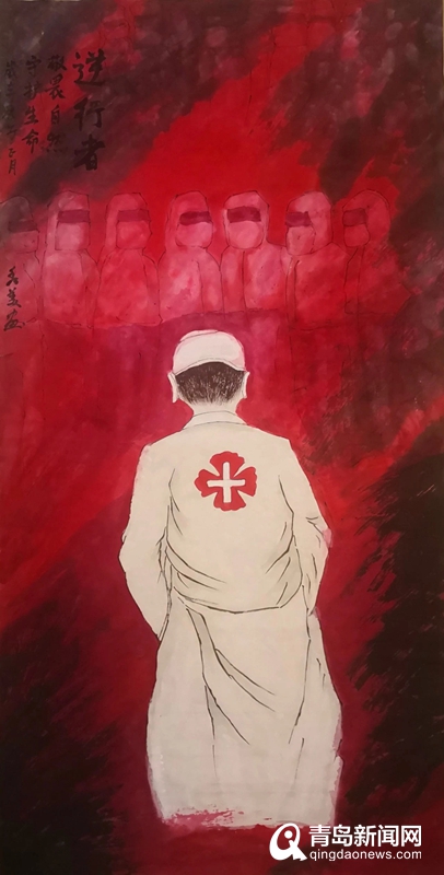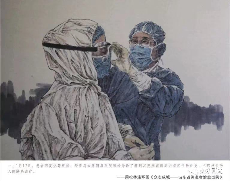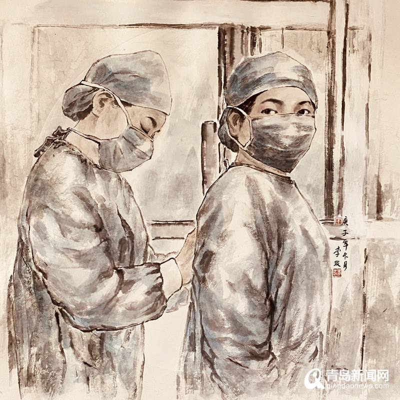 青島畫院的書畫家們用自己的畫筆描繪醫(yī)務(wù)人員奔赴一線、馳援武漢,社會(huì)各界捐款捐物、大愛無疆,人民群眾同心協(xié)力、守望相助,基層干部值班值守、排查服務(wù)等美術(shù)作品,集中呈現(xiàn)出這個(gè)特殊時(shí)期的精神圖譜。