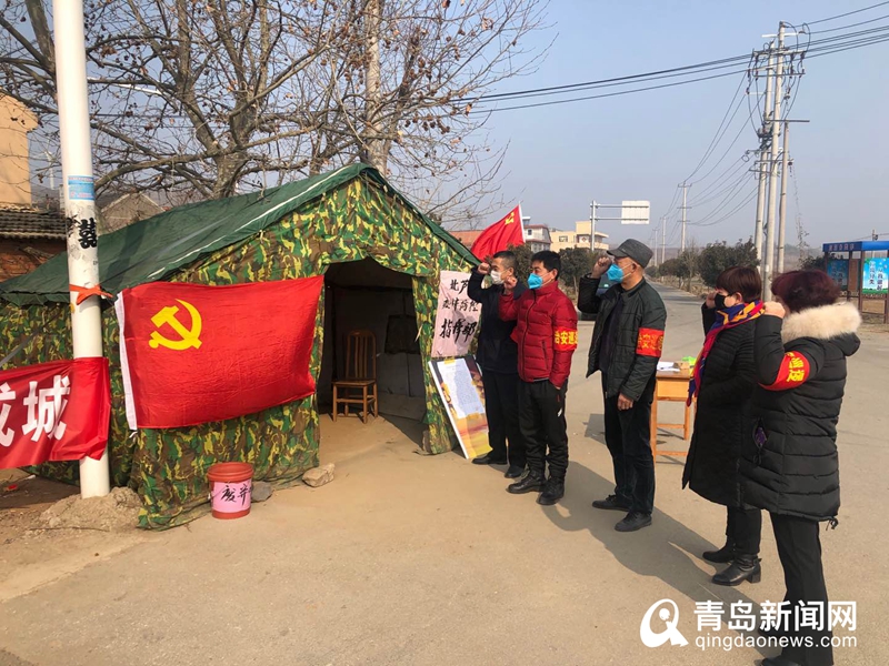 “我志愿加入中國共產(chǎn)黨,擁護(hù)黨的綱領(lǐng),遵守黨的章程,履行黨員義務(wù)……”2月10日,即墨區(qū)田橫鎮(zhèn)各防疫布控點(diǎn)前再次響起洪亮的宣誓聲,各村莊奮戰(zhàn)在一線的黨員們面對黨旗,高舉拳頭,重溫入黨誓詞。