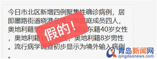 青島新聞網(wǎng)3月31日訊(記者 丁淑華)近日,青島人的朋友圈流傳一則消息稱“市北區(qū)曉港名城二期新增四例奧地利輸入性病例,涉及密切接觸者69名”。經(jīng)落實,相關信息系不實信息,曉港名城二期無奧地利入青人員。疫情防控關鍵是機器,提醒大家關注官方疫情發(fā)布,不造謠、不信謠、不傳謠,共同營造良好的網(wǎng)絡環(huán)境。