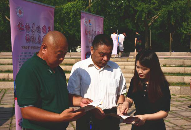 青島市慈善事業(yè)發(fā)展服務中心工作人員向市民發(fā)放《慈善法》宣傳折頁并為他們答疑釋惑