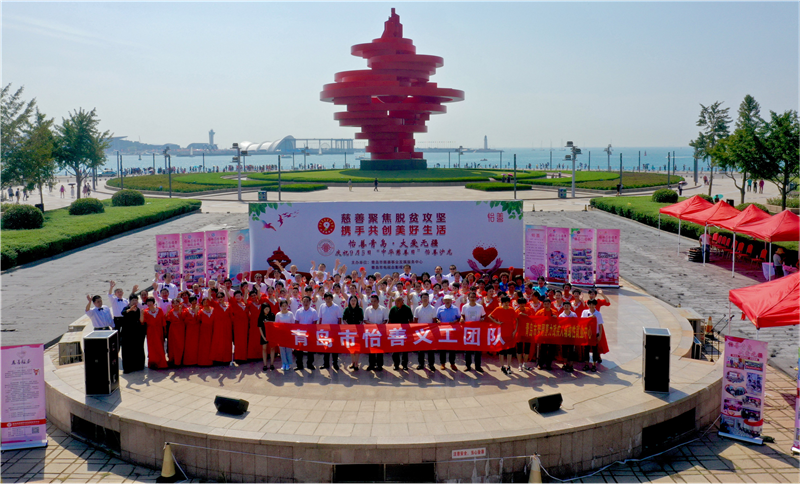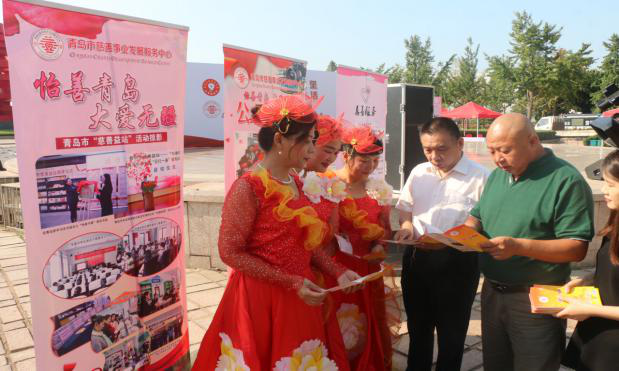 青島市怡善志愿者代表共同宣讀了《怡善青島·愛心飛揚》宣言書