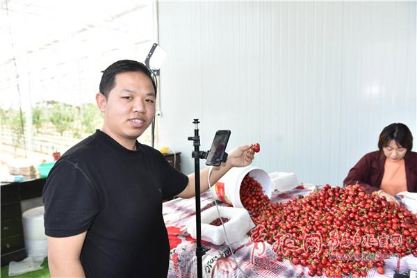 于展浩直播工作室所在的農(nóng)莊,有50畝大棚櫻桃,是返鄉(xiāng)創(chuàng)業(yè)者楊鵬飛與父親投資打造的。這個(gè)櫻桃季,面對(duì)外來(lái)客商減少、銷路受阻的實(shí)情,父子倆早早地與兩家電商提前籌劃,全面升級(jí)合作方式,開出包吃包住、提供直播房間等優(yōu)厚條件,以“原產(chǎn)地直供電商直播”的方式進(jìn)行線上售賣,目前日銷大櫻桃300斤,從4月初到5月中旬,大約持續(xù)45天,直播銷售效果遠(yuǎn)遠(yuǎn)超過(guò)傳統(tǒng)網(wǎng)店銷售,每日銷量能多一倍。