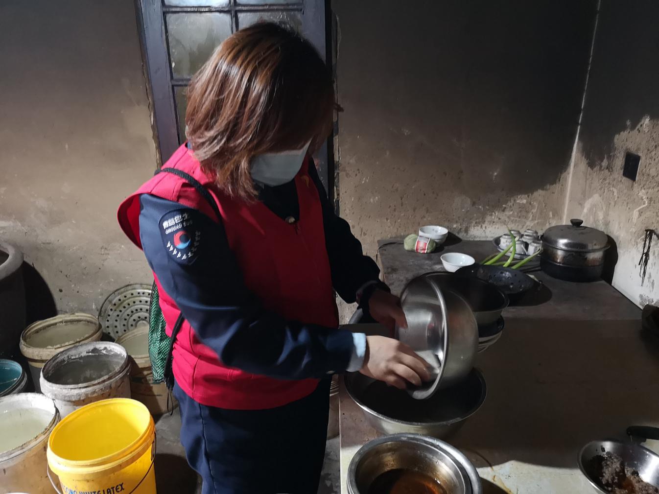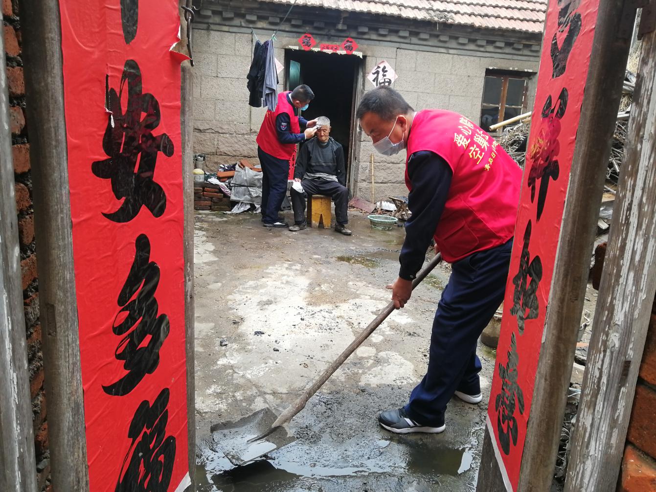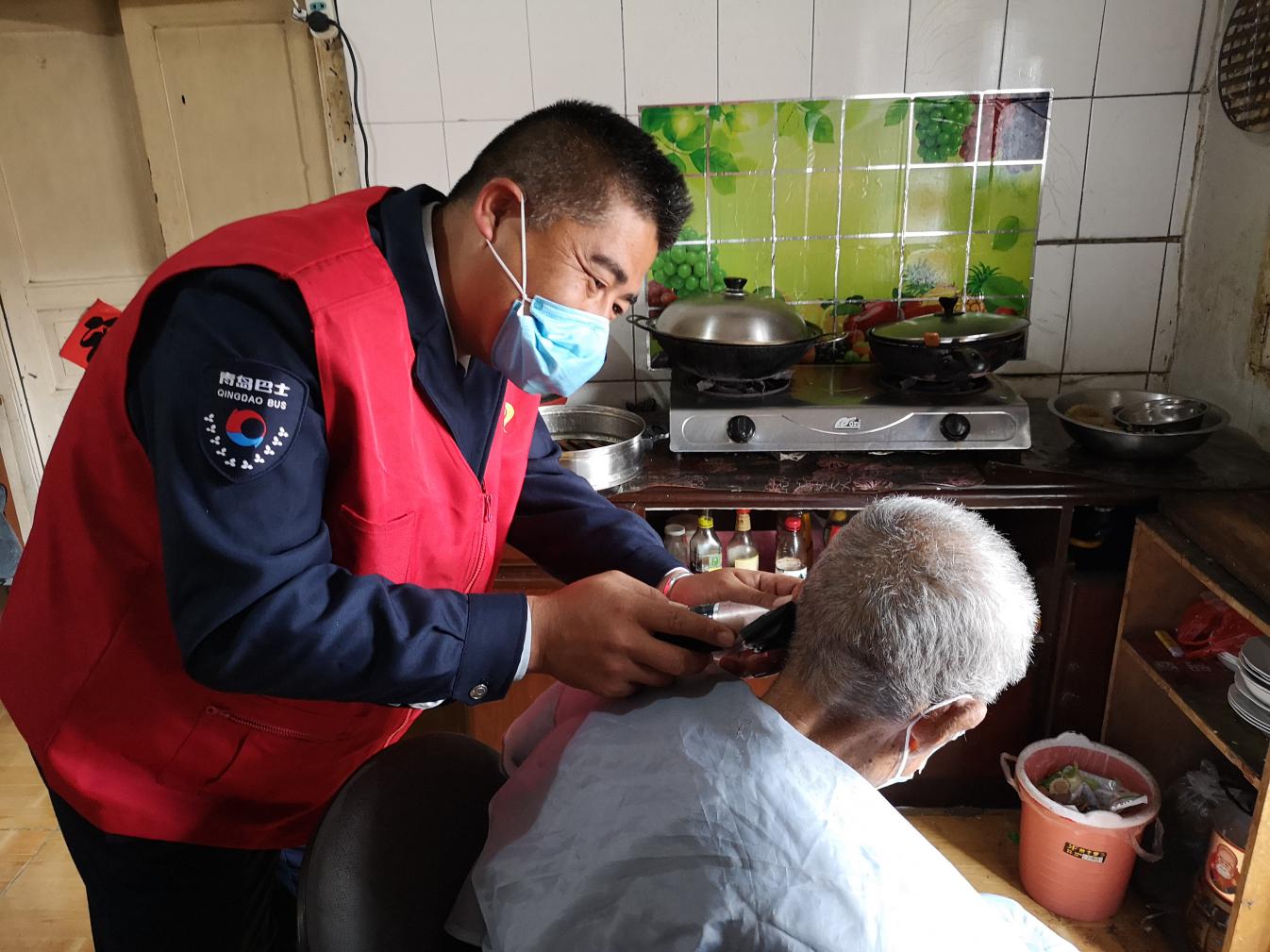 志愿者還特意帶了理發(fā)工具,在探望完王阿姨后直奔同村的另外兩位老人90歲的曲方平和80歲的王祝才老人家中,志愿者丁曉為兩位老人理了發(fā),其他志愿者則忙著洗涮碗筷收拾衛(wèi)生,理完發(fā)后的老人立顯精氣神。
