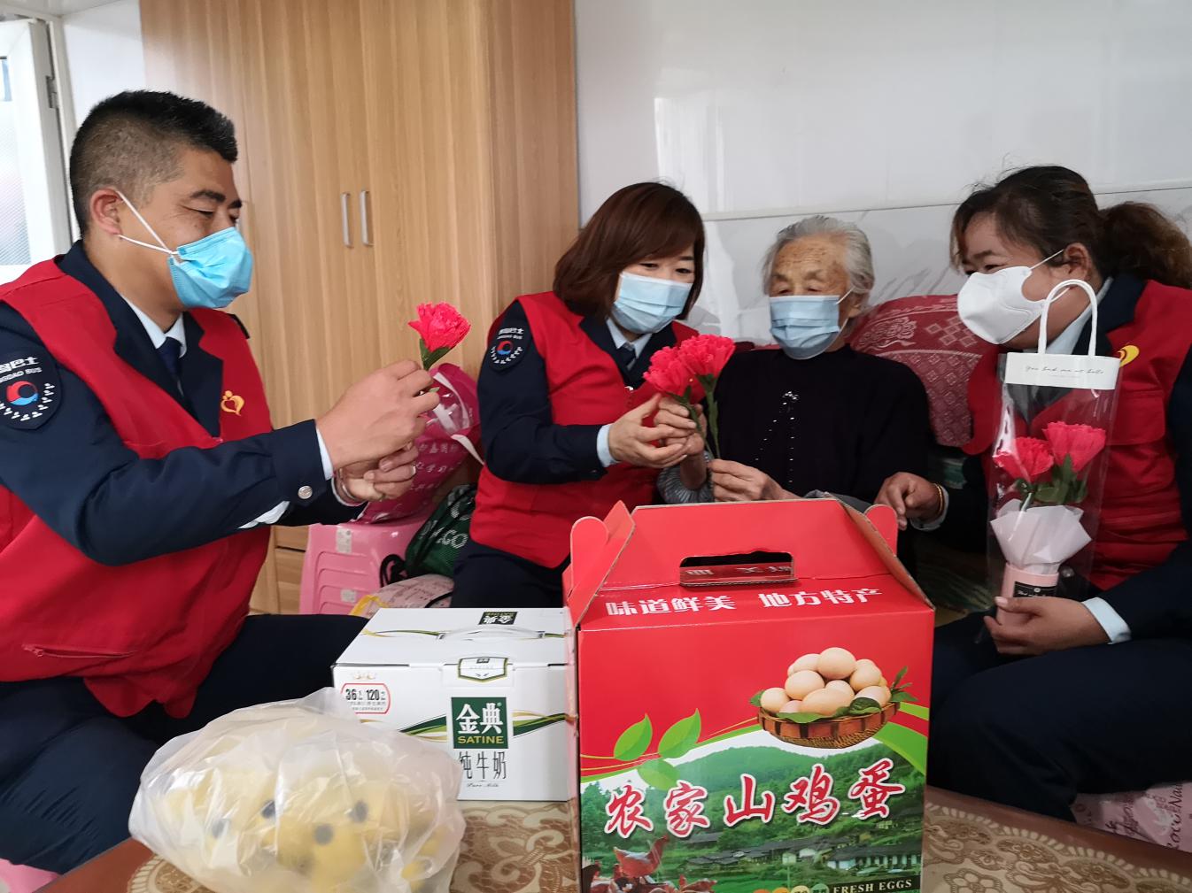 轉(zhuǎn)眼間,志愿者們驅(qū)車來到王阿姨家中,王阿姨看到志愿者們?yōu)樗徺I的奶和水果,還有新鮮雞蛋,埋怨志愿者們又亂花錢了。當志愿者們送上只為她老人家而精心制作的母親節(jié)禮物康乃馨時,王阿姨感慨萬千,說道:“讓你們整天掛念著,還為我買這買那,做這花花了你們不少功夫吧,你們真是有心了,我要掛在家里天天欣賞”。志愿者將六分黨支部書記董善杰和志愿者們的祝福視頻播放給王阿姨看,老人感動熱淚盈眶。邊看邊說,“謝謝你們的祝福,感謝你們這么多年的陪伴”。志愿者詢問了王阿姨近期膝蓋的傷情,叮囑王阿姨能正常走路了也要格外注意,有什么需要的活讓志愿者們來幫忙干就好。臨走,志愿者們讓王阿姨回到炕頭休息,志愿者們將屋內(nèi)外衛(wèi)生清理干凈后起身告辭。
