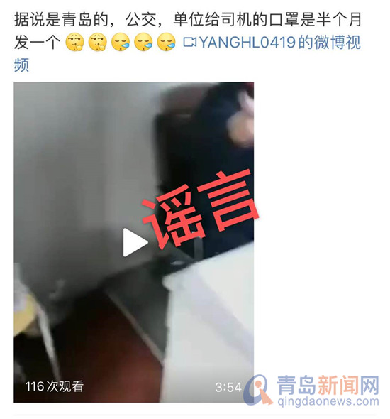 青島新聞網(wǎng)2月28日訊(記者 丁淑華)近日,一段視頻在島城部分市民的微信朋友圈流傳,視頻拍攝者聲稱自己作為一線公交駕駛員,單位配發(fā)1個口罩要求自己佩戴14天。對此,青島公交集團28日下午公開辟謠:視頻內容與事實嚴重不符,是謠言!對散布謠言者將保留依法追究法律責任的權利。