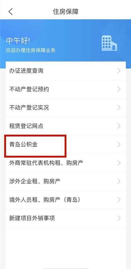 第二步,在“住房保障”業(yè)務(wù)詳情頁點(diǎn)擊“青島公積金”,即可進(jìn)入公積金業(yè)務(wù)辦理詳情頁面開始辦理。