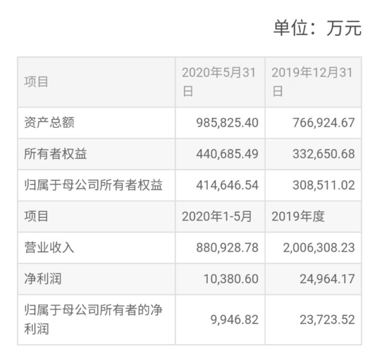 公告顯示,卡奧斯2019年?duì)I業(yè)收入200.63億元,凈利潤(rùn)2.49億元。今年1-5月?tīng)I(yíng)業(yè)收入88.09億元,凈利潤(rùn)1.04億元。