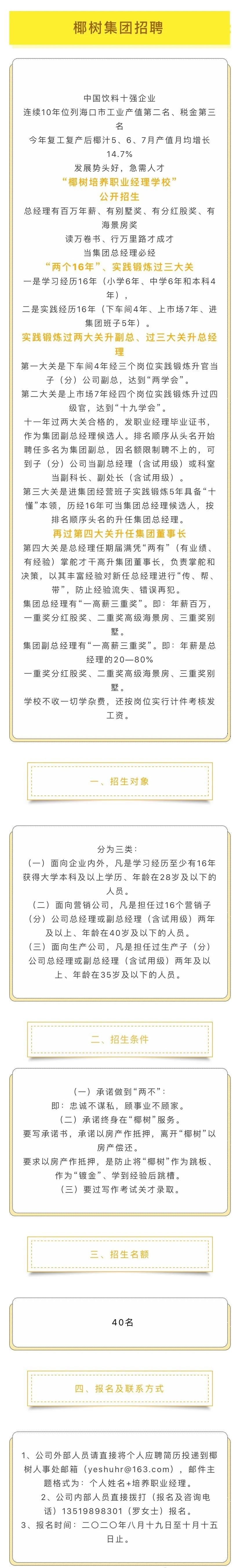 椰樹(shù)集團(tuán)發(fā)布招聘信息“椰樹(shù)培養(yǎng)職業(yè)經(jīng)理學(xué)?!惫_(kāi)招生(圖據(jù)南海網(wǎng))