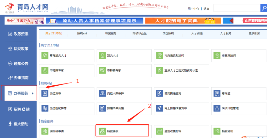 畢業(yè)生可登陸“青島人才網(wǎng)”或關(guān)注“青島人才”微信公眾號,進(jìn)入“辦事服務(wù)”/“辦事大廳”點(diǎn)擊“檔案接收”。根據(jù)系統(tǒng)提示填寫相關(guān)信息后提交審核,審核通過的可獲取調(diào)檔函,辦理檔案轉(zhuǎn)遞。