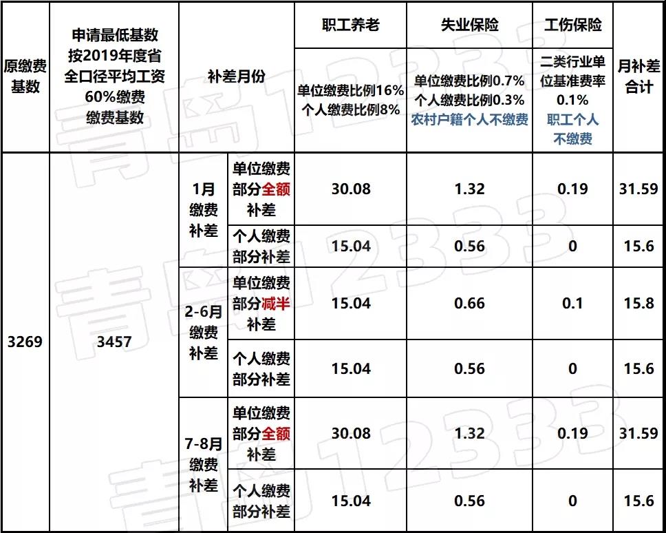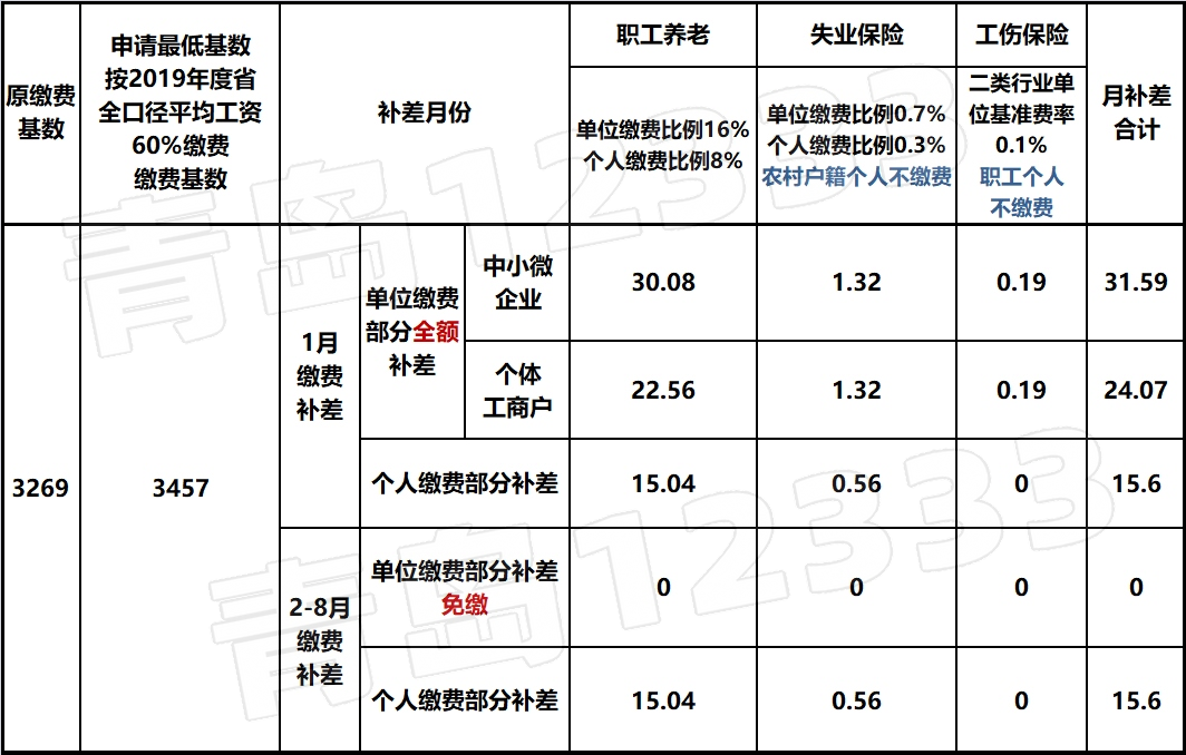 中小微企業(yè)及按單位方式參保的個體工商戶,繳費基數(shù)3269調(diào)為3457,月補差金額測算。