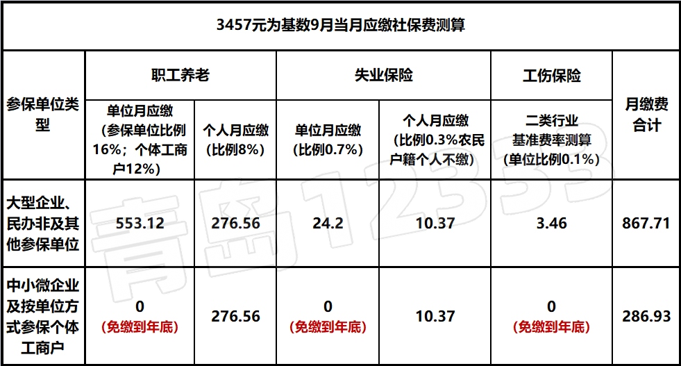 9月應(yīng)繳金額按3457元,基數(shù)標(biāo)準計算具體測算表如下: