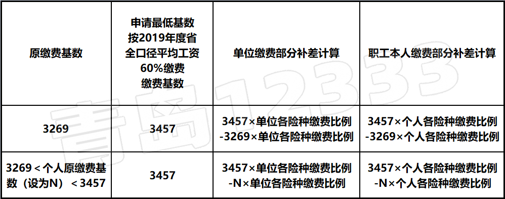 申請按3457元為繳費基數(shù)的,補差繳費計算公式: