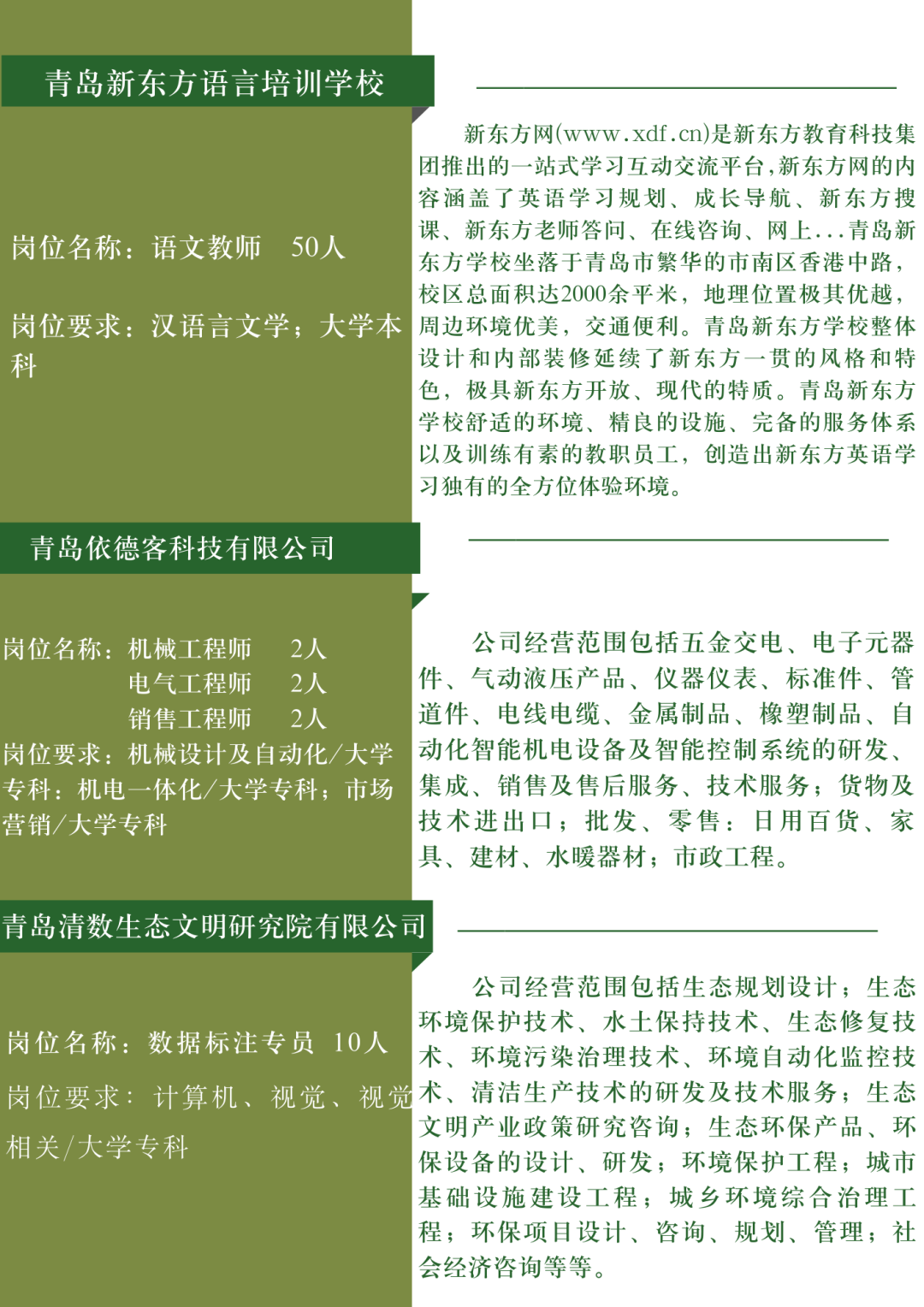 青島新聞網(wǎng)9月17日訊 近期精選招聘崗位推薦如下: