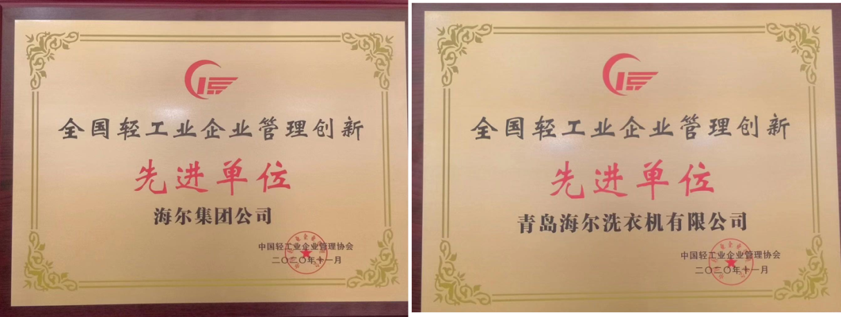 11月26日,中國輕工業(yè)企業(yè)管理協(xié)會第五次會員大會暨五屆一次理事(擴大)會議在北京召開,中國輕工業(yè)聯(lián)合會黨委書記、會長張崇和、工業(yè)和信息化部消費品工業(yè)司二級巡視員張軍發(fā)表講話,會議發(fā)布了2020年度中國輕工企業(yè)管理現(xiàn)代化創(chuàng)新成果、企業(yè)管理創(chuàng)新先進單位等多項榮譽,海爾人單合一模式創(chuàng)新成果再獲權(quán)威認可,海爾集團公司、青島海爾洗衣機有限公司獲得“全國輕工業(yè)企業(yè)管理創(chuàng)新先進單位”,同時海爾2項管理成果均榮獲企業(yè)管理創(chuàng)新成果一等獎,成為本屆獲得一等獎最多的企業(yè)。