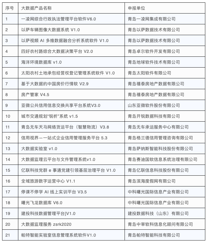 2020年度山東省優(yōu)秀大數(shù)據(jù)產(chǎn)品名單