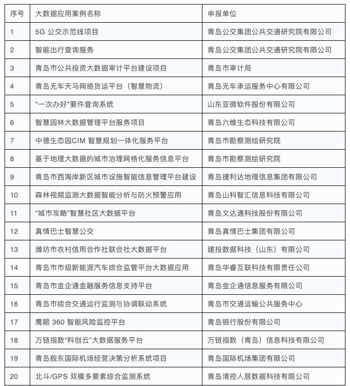 2020年度山東省優(yōu)秀大數(shù)據(jù)應(yīng)用案例名單
