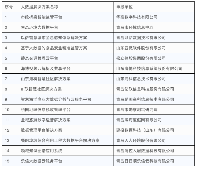 2020年度山東省優(yōu)秀大數(shù)據(jù)解決方案名單